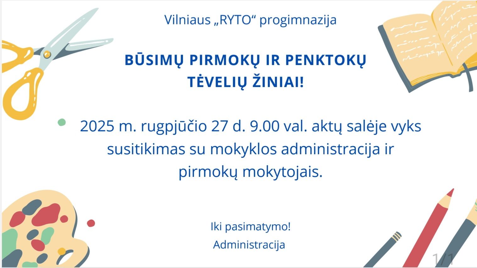 Būsimų pirmokų ir penktokų tėvelių susitikimas