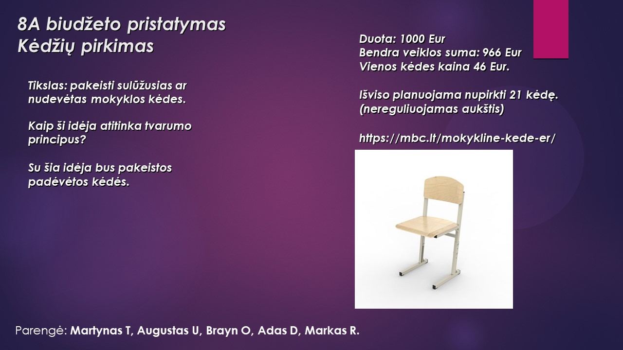 5-8 klasių mokinių Dalyvaujamojo biudžeto projekto idėjos